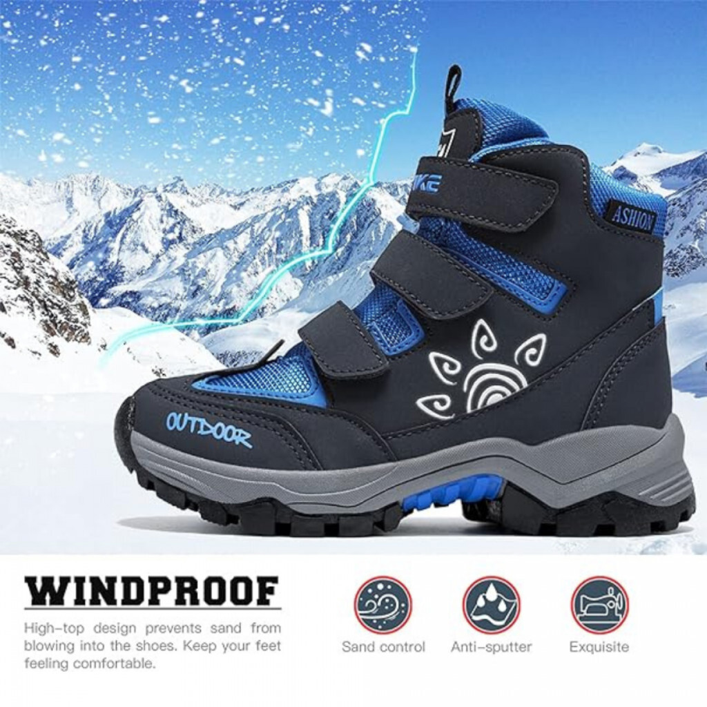 ASHION Meleg Gyerek Téli Cipő – Bélelt Bakancs 35 (Sötétkék-Fekete)