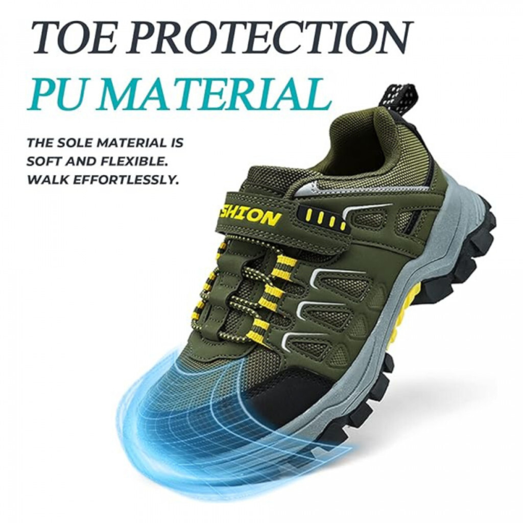 ASHION Gyerek Túracipő – Légáteresztő Csúszásmentes Sportcipő 30 (Sárga-Sötétzöld)