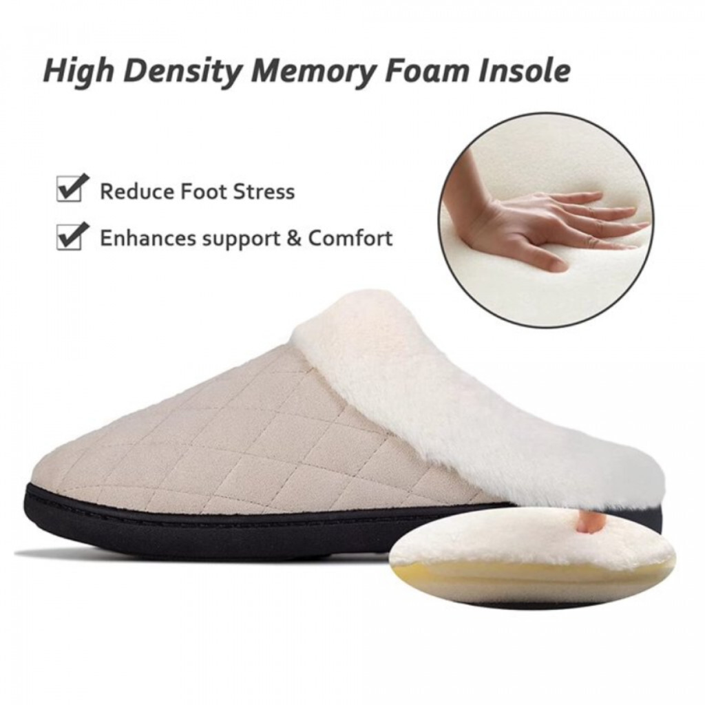 Ultraideas memóriahabos téli mamusz – 46-47-es méret, bézs kényelmes benti papucs csúszásgátló talppal