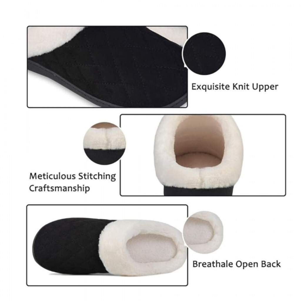 Ultraideas memóriahabos téli mamusz – 38-39-es méret, fekete kényelmes benti papucs csúszásgátló talppal