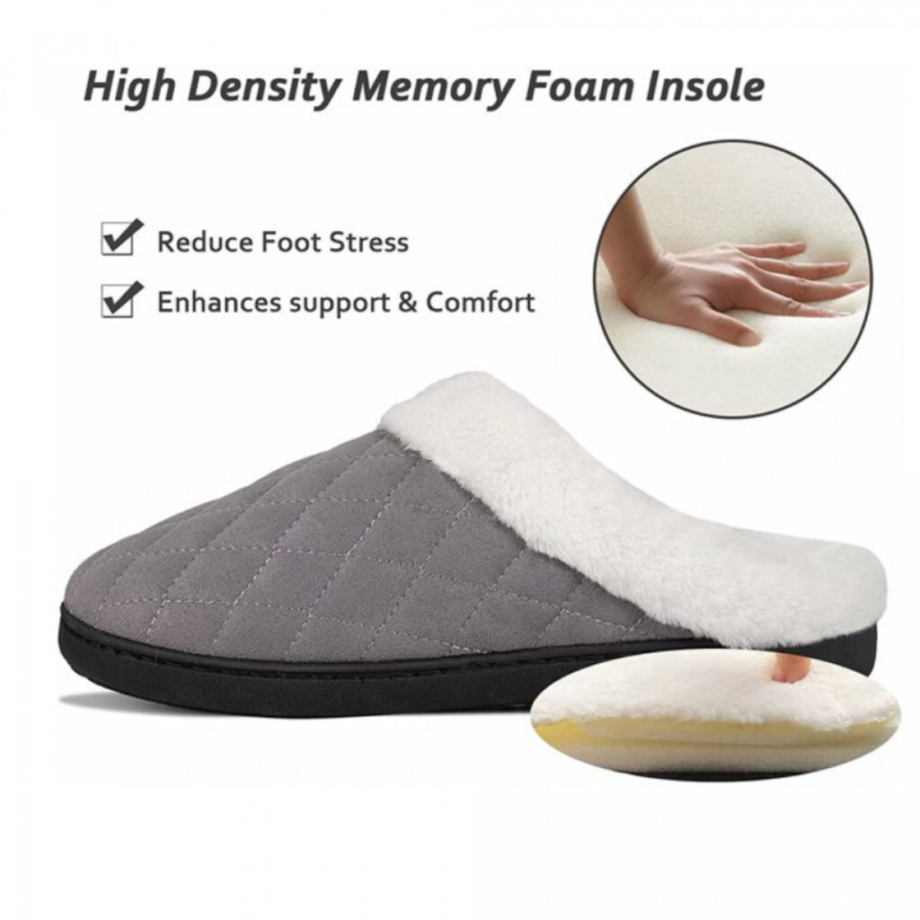 Ultraideas memóriahabos téli mamusz – 46-47-es méret, szürke kényelmes benti papucs csúszásgátló gumitalppal